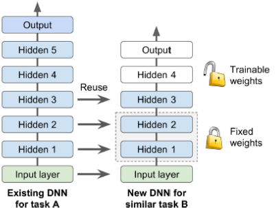 신경망을 처음부터 훈련하는 것은 일반적으로 좋은 생각이 아니다. 대신 유사한 작업을 수행하는 기존 신경망을 찾아 이 네트워크의 하위 레이어를 재사용해야 한다. 이 기술을 전이 학습(Transfer Learning)이라고 한다. 이를 통해 훈련 시간이 상당히 단축되고 훈련 데이터가 훨씬 적게 필요하다.