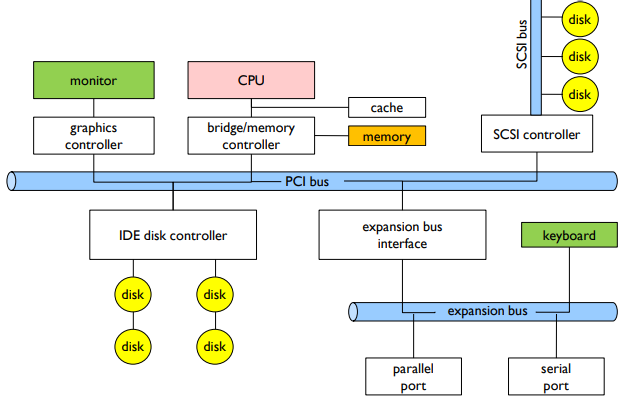 현대에는 엄청나게 많은 종류의 I/O 장치가 있다. CPU는 장치 컨트롤러을 통해 이들과 상호 작용한다. 장치 컨트롤러에는 읽고 쓸 수 있는 일련의 레지스터가 포함되어 있다.