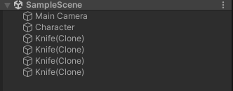 왼쪽은 부모 설정을 하지 않아 계층창에 클론들이 생성이 된 상태, 오른쪽은 부모 설정을 하여 "Character"부모 아래에 클론들이 정렬이 된 상태이다.