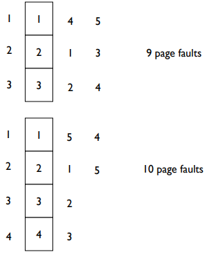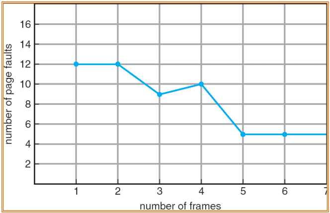 Belady의 이상 현상(Belady’s Anomaly)는 페이지 프레임(메모리의 공간)의 수를 늘릴수록 페이지 폴트(페이지 부재)의 수가 증가하는 현상을 말한다.