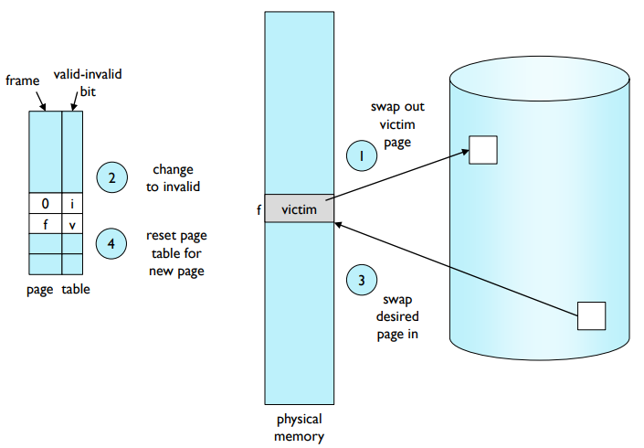 - 필요한 페이지를 (새로운) 빈 프레임으로 가져와서 페이지 테이블을 업데이트한다.