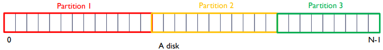 파티션(Partition)은 하나의 디스크를 여러 개의 논리적인 디스크로 나눌 수 있다. 운영 체제는 각 파티션을 별개의 디스크로 취급할 수 있다.