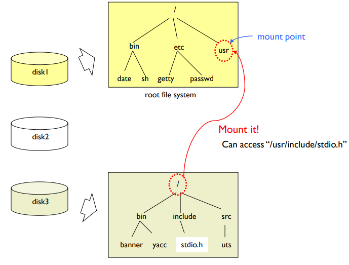 요약하면, 디스크 2와 디스크 3에 있는 파일에 접근하기 위해서는 해당 디스크를 시스템에 연결하고, 파일 시스템을 마운트하여 파일에 접근할 수 있는 마운트 지점을 생성해야 한다. 그런 다음 마운트 지점을 통해 파일을 읽거나 쓸 수 있다.