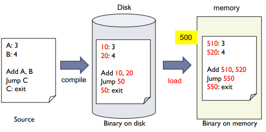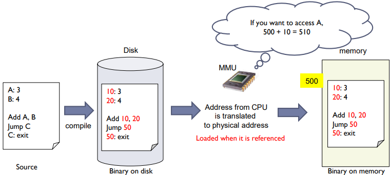 - 주소 바인딩은 세 단계(컴파일 시간, 로드 시간 및 실행 시간)에서 발생할 수 있다.