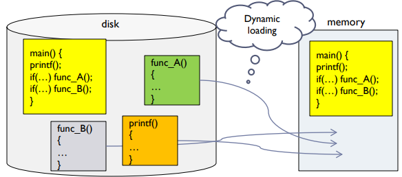 메모리 동적 적재는 프로그램이 실행될 때 필요한 부분만을 메모리에 적재하는 기법이다. 이는 프로그램의 실행 속도를 향상하고 메모리의 효율성을 높이는 데 도움이 된다. 동적 적재는 필요하지 않은 루틴은 절대 로드되지 않고 실행 중에 필요한 부분만 적재한다. 이는 많은 양의 오류 처리 코드가 필요할 때 유용하다. 그렇다고 로드할 때마다 매번 동일한 주소가 비어 있지 않는다. 어디든지 로드될 수 있기 때문에 동적 연결(dynamic linking)이 필요하다.